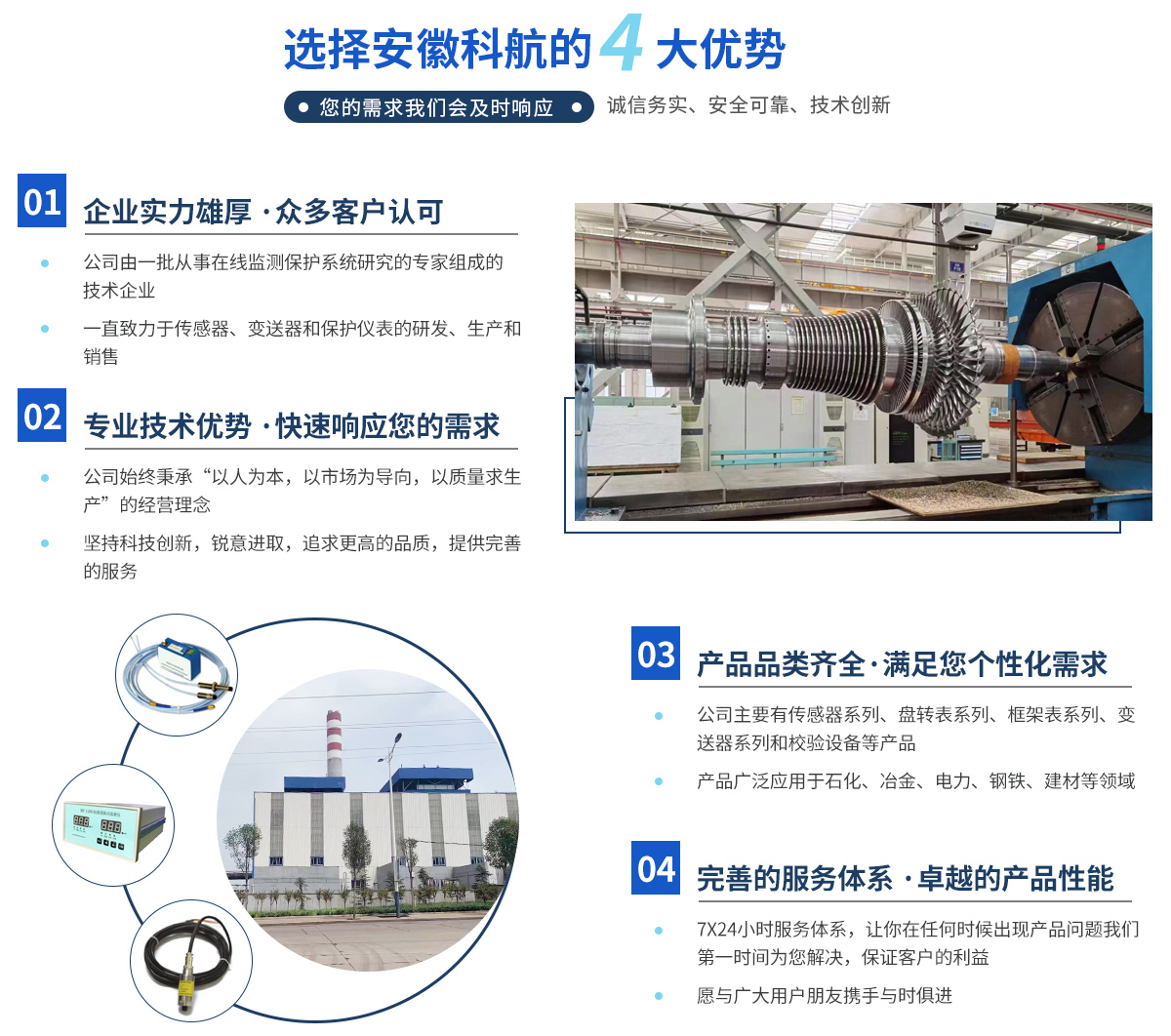 - 安徽科航儀器儀表有限公司由一批從事在線(xiàn)監(jiān)測(cè)保護(hù)系統(tǒng)研究的專(zhuān)家組成的技術(shù)企業(yè)。自成立以來(lái),一直致力于傳感器、變送器和保護(hù)儀表的研發(fā)、生產(chǎn)和銷(xiāo)售。產(chǎn)品廣泛應(yīng)用于石化、冶金、電力、鋼鐵、建材等領(lǐng)域,是汽輪機(jī)組、水輪機(jī)組、壓縮機(jī)、制氧機(jī)、鼓風(fēng)機(jī)、水泵等大型機(jī)械不可缺少的在線(xiàn)監(jiān)測(cè)保護(hù)設(shè)備。公司主要有傳感器系列、盤(pán)轉(zhuǎn)表系列、框架表系列、變送器系列和校驗(yàn)設(shè)備等產(chǎn)品。 公司始終秉承“以人為本,以市場(chǎng)為導(dǎo)向,以質(zhì)量...